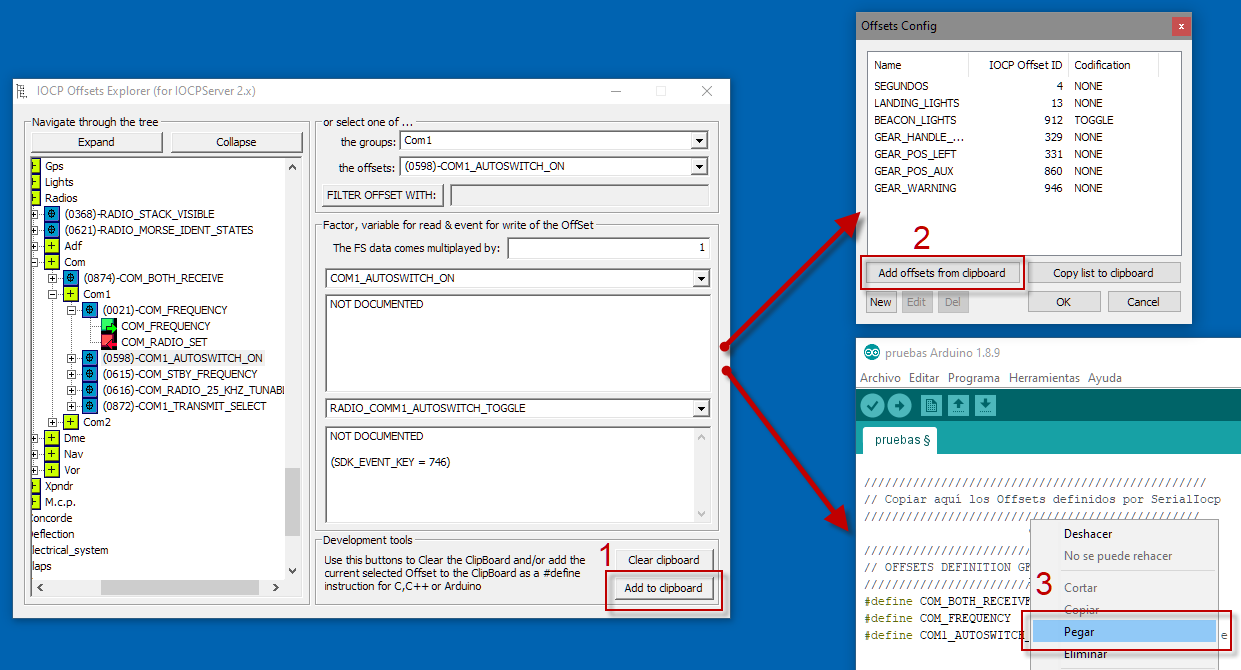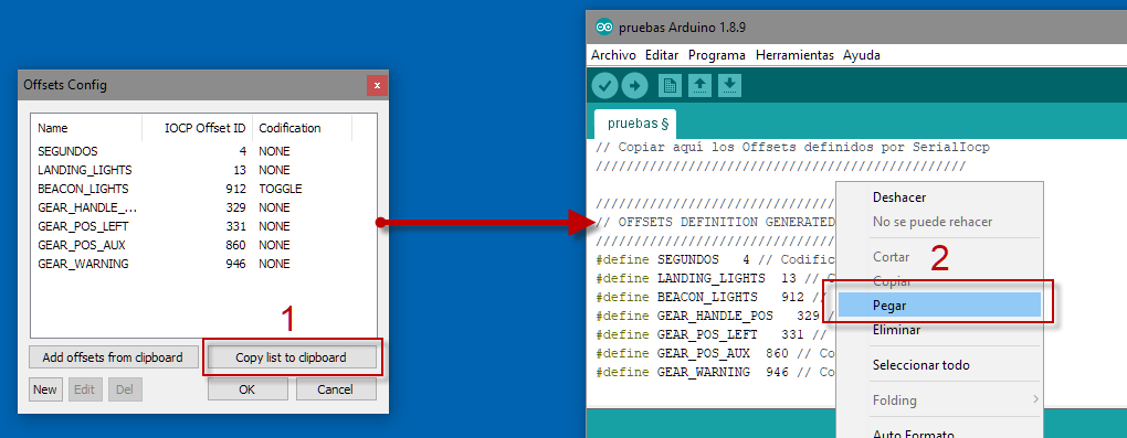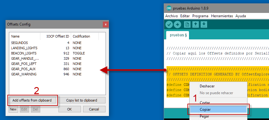 Para facilitar la definicion de los Offsets que se van a utilizar en los proyectos de SerialIocp, y dado que se utilizan tres herramientas en las que los Offsets tienen que estar sincronizados, se han definido metodos para poder copiar Offsets en el formato adecuado entre las tres herramientas: