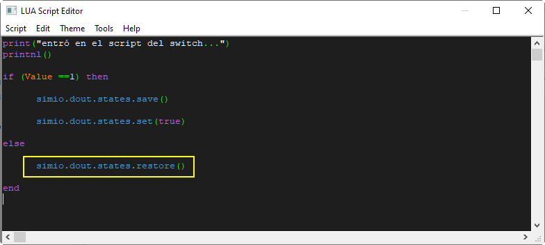 Esta función se utiliza para restaurar, en un script de LUA, el estado guardado de todos los pin de salida de una Main y todas sus tarjetas de salidas, conectadas la aplicación.