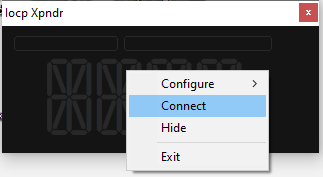 Si se configuró la opcion de Hide after connect, IocpXpndr estará minimizada en los iconos ocultos de la barra de tareas. Utilizar la opción Show (botón derecho sobre el icono) para maximizar la aplicación.